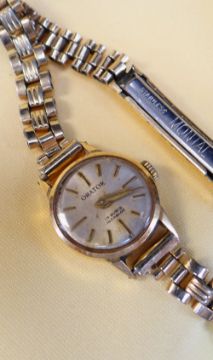 18CT GOLD LADIES ORATOR WRISTWATCH, having rolled gold bricklink strap, in Watches of Switzerland box