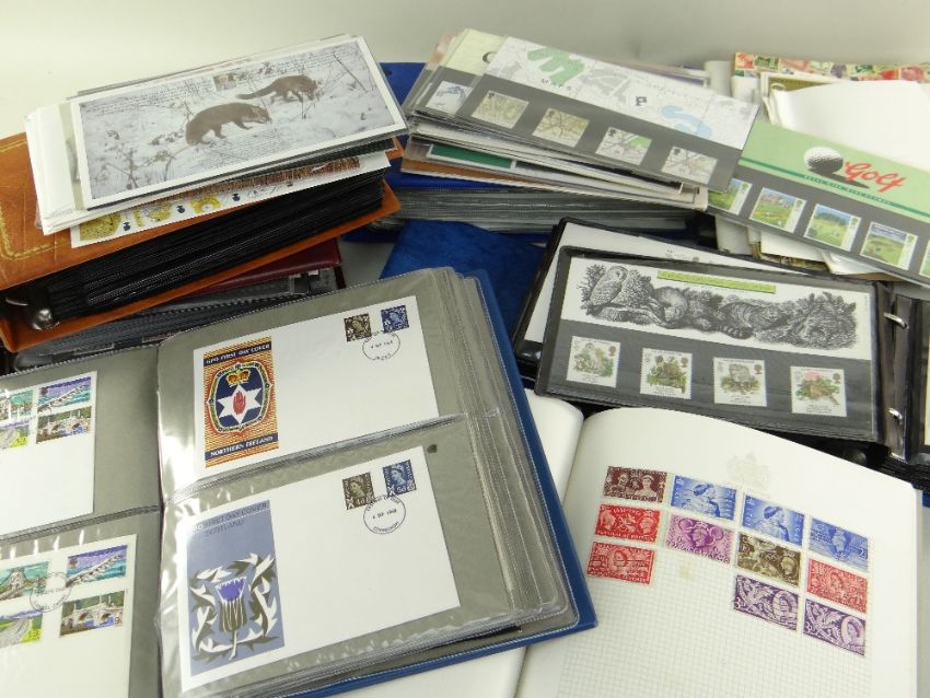 STAMPS: Collection of First Day covers and three small stockbooks containing Wilding Definitives, three books of GPO Post Office counter stamp books mostly E II, mostly used