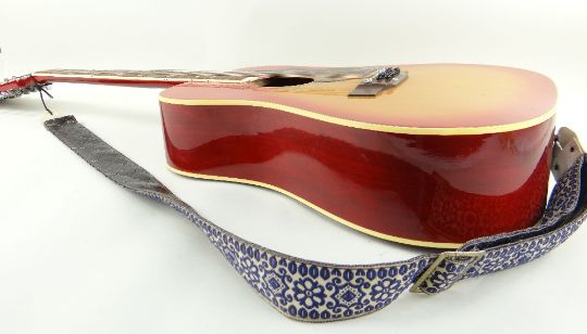 COLUMBUS HUMMINGBIRD 12-STRING ACOUSTIC GUITAR, cherry sunburst finish, fretboard with mother of pearl inserts, made in Japan, model 122 to label, 110cms long