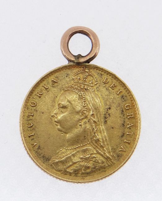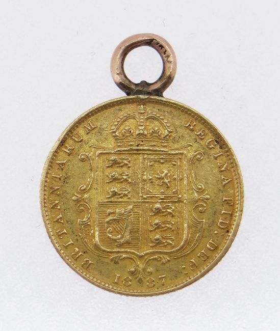 VICTORIAN GOLD HALF SOVEREIGN, 1887, Jubilee head, with suspension loop, 4.2gms