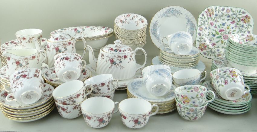 THREE MINTON BONE CHINA PART SERVICES, comprising 'Ancestral' (72), 'Belbrachen' (32) and 'Haddon Hall' (36) patterns