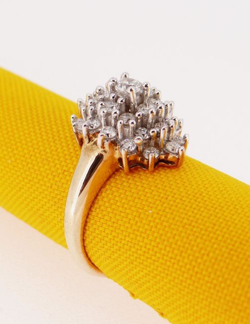 9CT GOLD DIAMOND CLUSTER RING, made up of twenty-nine graduated diamonds, ring size N / O, 4.8gms