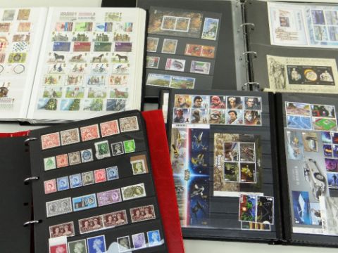 STAMPS: GB & World, including mint EII mainly unmounted souvenir issues, souvenir sheets, used early 20thC Machin definitives, Canadian issues, FDCs and envelopes, mint Gibraltar, and 2 good stock albums with mixed GB (1929-) mint and used, Royal Mail counted books, presentation packs, popular cultures ETC. (6 albums)