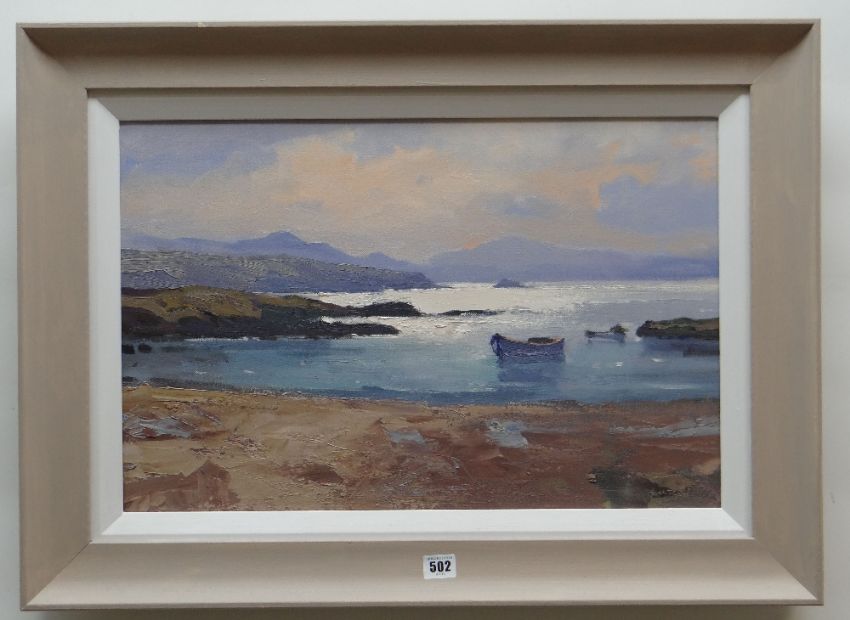 GARETH THOMAS oil on canvas - entitled verso 'Looking towards Snowdon from Anglesey', signed, 39 x 57cms