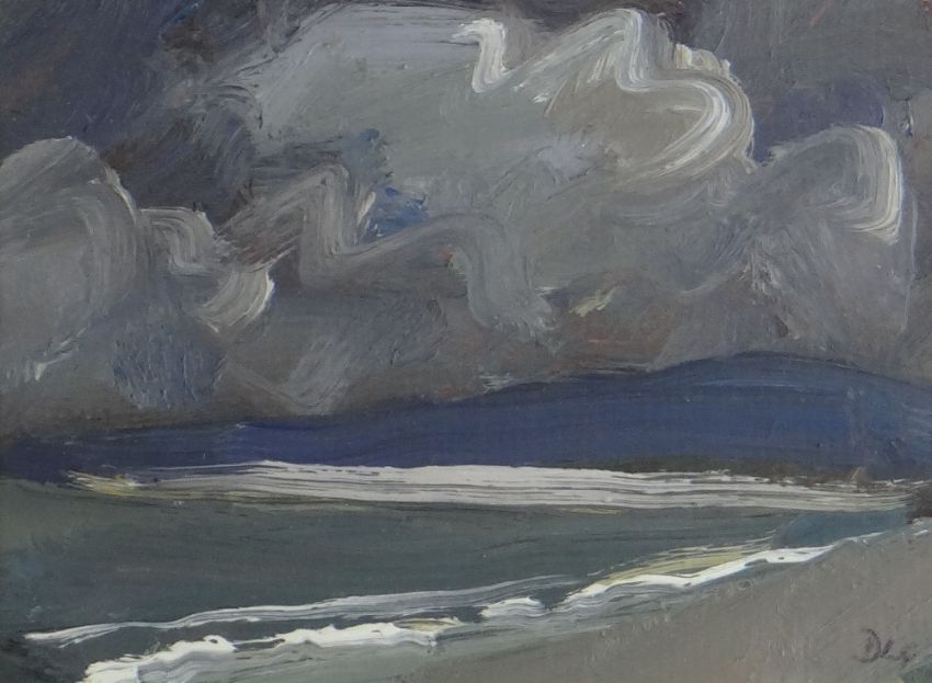 DAVID LLOYD GRIFFITH oil on panel - entitled verso 'Thunderstorm Pensarn Beach' and dated 2007, signed with initials, 12 x 15.5cms Provenance: private collection consigned via our Cardiff office Presentation & Condition: no problems, framed and glazedPlease note that this lot may be subject to Droite de Suite at 4% of the hammer price (Please see terms / enquire)