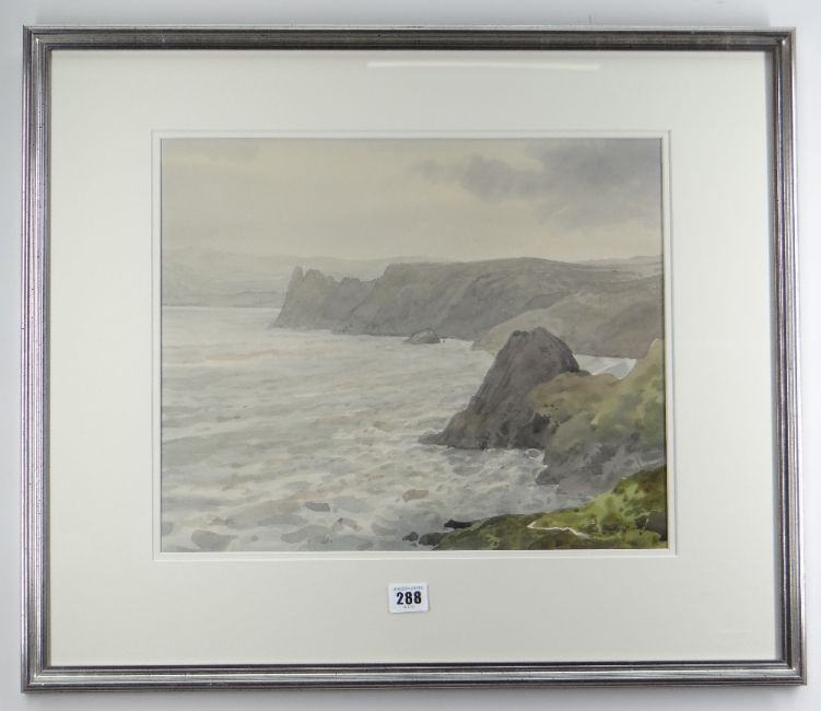 GARETH THOMAS watercolour - Gower coastline, signed and dated 1986, 33 x 41cms Provenance: from the collection of the late Rev John O Wilstead B.D FRSA, thence by descent, please see Lot 221 Presentation & Condition: no problems, framed and glazedPlease note that this lot may be subject to Droite de Suite at 4% of the hammer price (Please see terms / enquire)