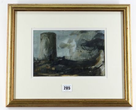 CLIVE HICKS-JENKINS gouache - entitled verso on Attic Gallery Swansea label 'Easter Road', 15 x 22.5cms Provenance: private collection consigned via our Cardiff office Presentation & Condition: no problems, framed and glazedPlease note that this lot may be subject to Droite de Suite at 4% of the hammer price (Please see terms / enquire)