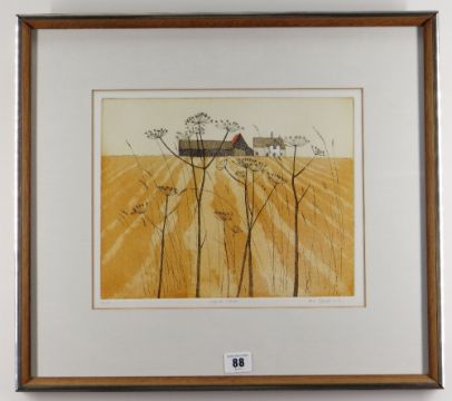 IOLA SPAFFORD limited edition (9/75) coloured etching - title in pencil to margin 'Suffolk Farm', signed, 25 x 31cms Provenance: from the collection of the late Rev John O Wilstead B.D FRSA, thence by descent, see Lot 84 Presentation & Condition: discolouration to paper with age, framed and glazedPlease note that this lot may be subject to Droite de Suite at 4% of the hammer price (Please see terms / enquire)