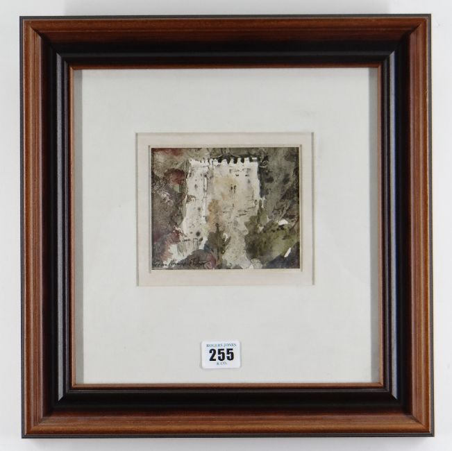 JOHN KNAPP-FISHER mixed media - church towers, signed and dated 1985, 10 x 12cms Provenance: private collection, consigned via our west Wales office Presentation & Condition: no problems, framed and glazedPlease note that this lot may be subject to Droite de Suite at 4% of the hammer price (Please see terms / enquire)