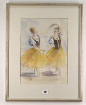 VALERIE GANZ mixed media - entitled verso on Attic Gallery Swansea label 'Yellow Duet 1989', signed, 35 x 26cms Provenance: from the collection of the late Rev John O Wilstead B.D FRSA, thence by descent, please see Lot 221 Presentation & Condition: no problems, framed and glazedPlease note that this lot may be subject to Droite de Suite at 4% of the hammer price (Please see terms / enquire)