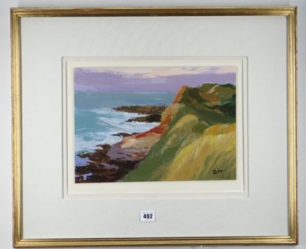 DONALD MCINTYRE acrylic - entitled verso on Attic Gallery Swansea label 'Pembs Coast No. 2', signed with initials, 25 x 36cms Provenance: from the collection of the late Rev John O Wilstead B.D FRSA, thence by descent, please see Lot 379 Presentation & Condition: no problems, framed and glazedPlease note that this lot may be subject to Droite de Suite at 4% of the hammer price (Please see terms / enquire)