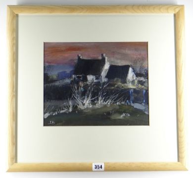 LEONARD BEARD oil on card - cottage at sunset, signed with initials, 23 x 29cms Provenance: private collection consigned via our Cardiff office Presentation & Condition: no problems, framed and glazedPlease note that this lot may be subject to Droite de Suite at 4% of the hammer price (Please see terms / enquire)