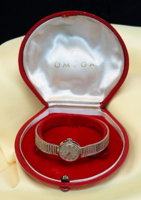 Condition: repair to back of bracelet, appears in complete overall condition, not tested as running, wear and light marks / scratches, box scuffed and hinge loose, comes with 1990 insurance valuation document