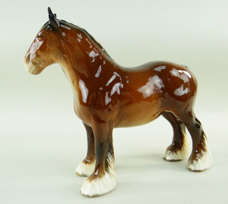 TWO BESWICK 818 SHIRE HORSES, rocking horse grey and brown, one an early unmarked model with holes to feet, 21.5cms high (2)