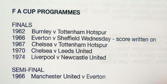 COLLECTION OF MAINLY ENGLISH CLUB TEAM FOOTBALL PROGRAMS including FA Cup Finals 1962, 1966, 1967, 1970, 1974 and 1960s mixed organised alphabetically eg. Arsenal, Blackpool, Bradford, etc. Also small number of Scottish eg, Hibs and Celtic, believed approx 60 in total (list compiled by vendor available which does not act as a guarantee that all listed are present)