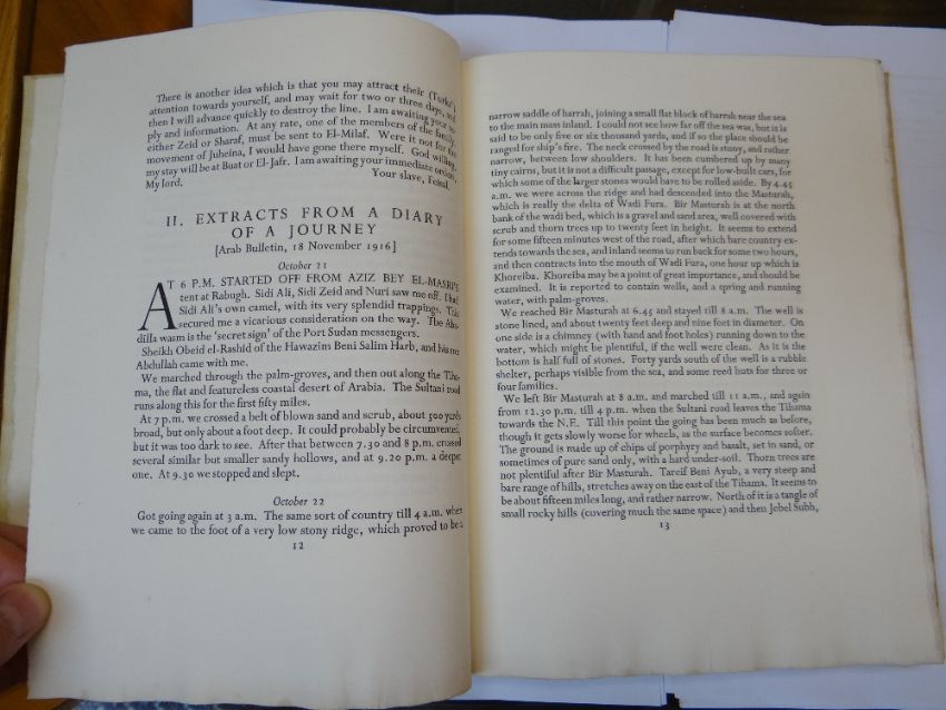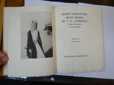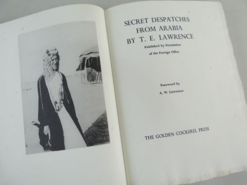 GOLDEN COCKEREL PRESS: LAWRENCE (T.E.) Secret Despatches from Arabia, number 914 of 1000 copies, frontispiece portrait, publisher's quarter niger morocco, t.e.g., 4to, Golden Cockerel Press, 1939 Condition: covers slightly stained, foxing to page edges.There are no ownership markings.