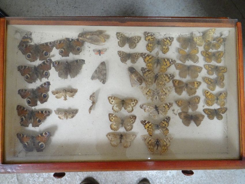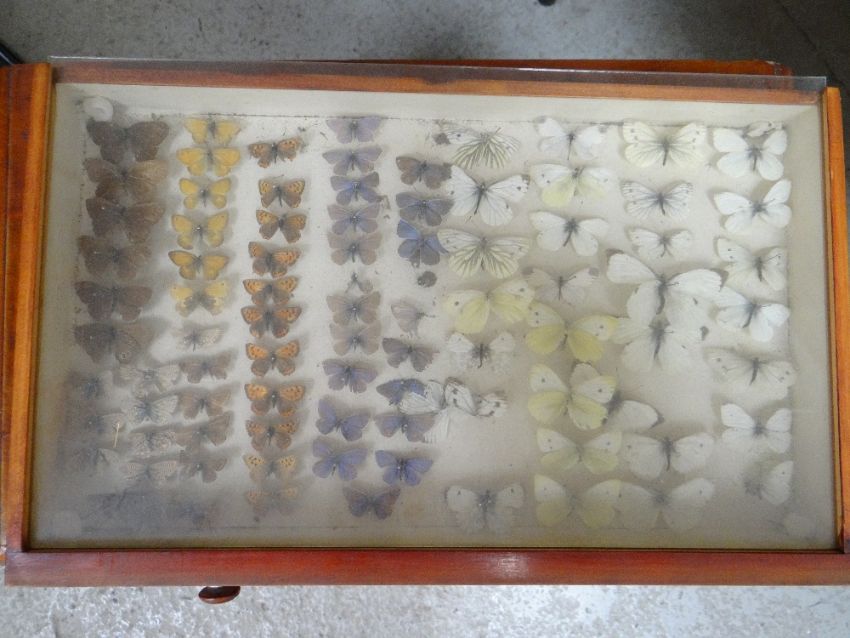 EIGHT DRAWER COLLECTORS CABINET OF VICTORIAN BUTTERFLIES, glazed drawers