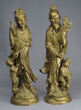 PAIR CHINESE CARVED GILTWOOD FIGURES, probably depicting Immortals, 40cms high (2)