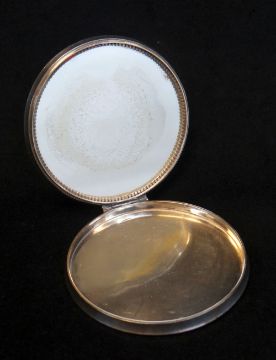 GEORG JENSEN DANISH SILVER COMPACT, model 278 designed by Sivgard Bernadotte, the hinged circular lid with chrysanthemum, signed with facsimile signature, marked '925 S Denmark', gross wt 121g/3.9 ozt