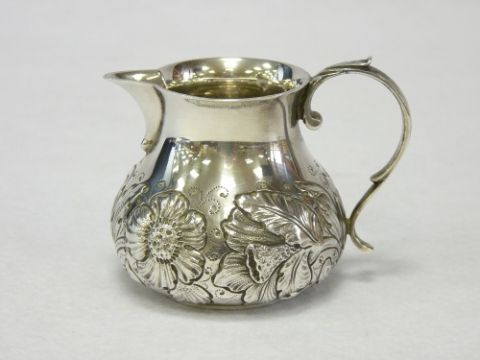 A WILLIAM IV SILVER CREAM JUG - the body of swirled form, 2 ozt, London 1848 and a squat silver cream jug, half plain bodied and half floral decorated, 3 ozt, London 1915