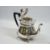 EDWARD VII THREE PIECE SILVER TEA SERVICE - London 1908 and 1909, makers James Aitchison & Horace Woodward & Co Ltd, 33.5 ozt gross, the teapot with ebonized handle and finial knop, all three pieces cauldron shape on four hoof feet along with a continental sugar spoon