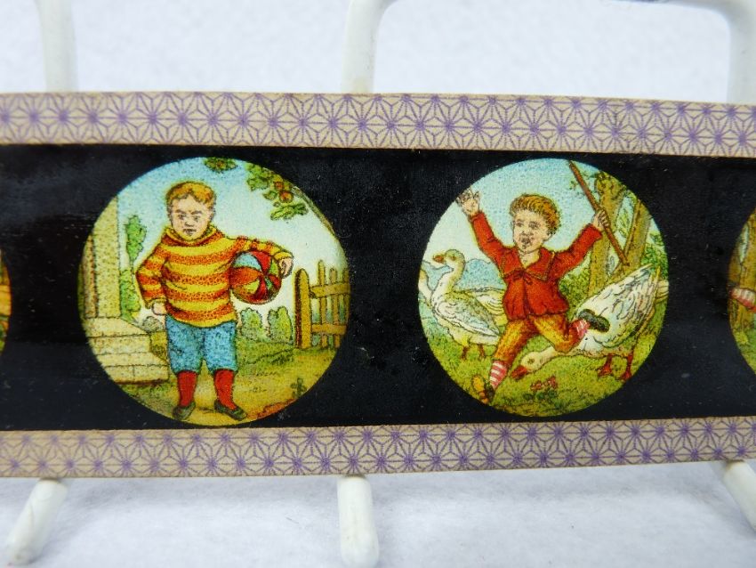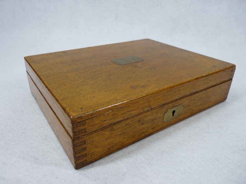 OAK CASED DRAWING INSTRUMENT SET - the interior marked 'Winsor & Newton Ltd London' and a quantity of Magic Lantern slides, one showing a vintage etching of a woman about to be hanged along with a group of colourful nursery type four image slides in original box