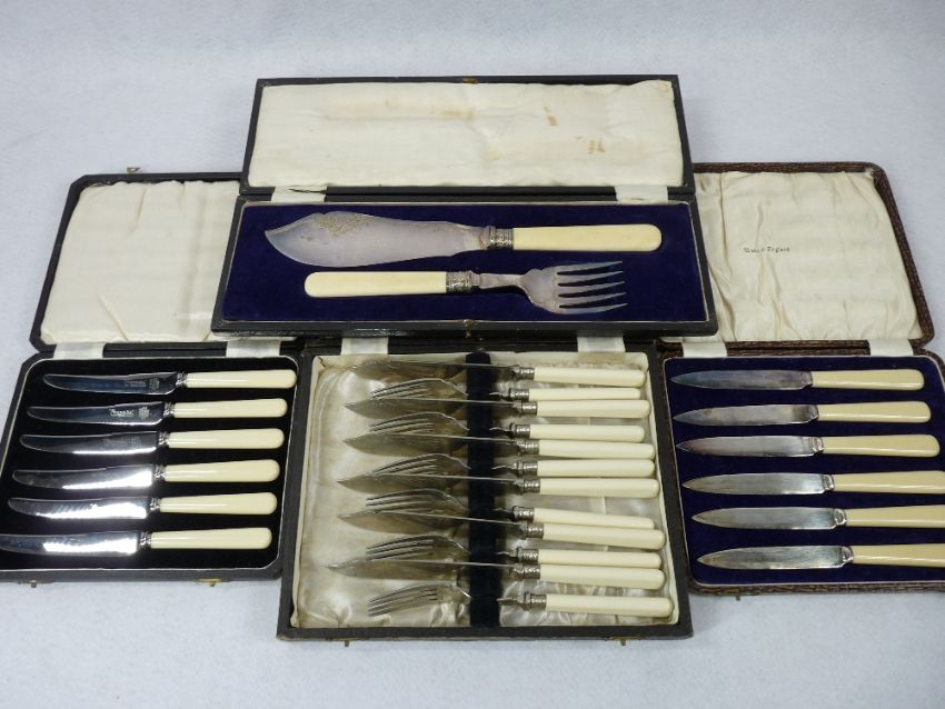 CASED CUTLERY, EPNS & OTHER METAL WARE including a twin-handled pewter trophy cup