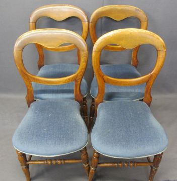 VICTORIAN & LATER SALON CHAIRS (7) - a matching set of four balloon backs with stuff over seats on turned supports, a pair with canework shaped backs and seats on turned supports and a single mahogany example balloon back with carved lower back detail and front supports with stuff over floral upholstered seat, 84cms H, 39cms W, 36cms seat D, 83cms H, 40.5cms W, 41cms seat D and 88.5cms H, 45cms W, 42cms seat D measurements respectively