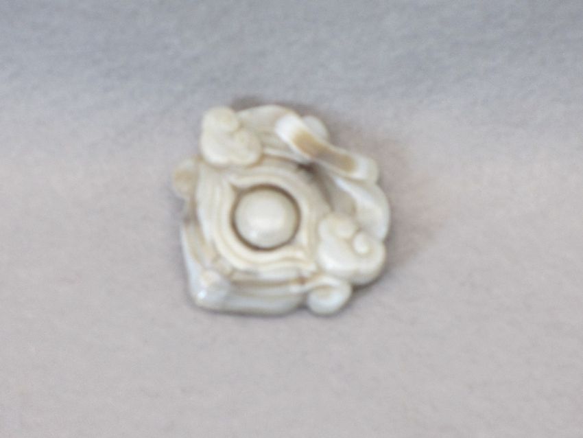 ROYAL WORCESTER CHINESE MAN FIGURINE - Countries of the World Series Circa 1890, 16.5cms H, impressed and puce printed factory marks to the base and EASTERN CARVED AGATE TOGGLE and a modern Japanese wall charger, 32cms diameter, the toggle carved with 'Seeing Eye' type decoration, 5 x 5cms