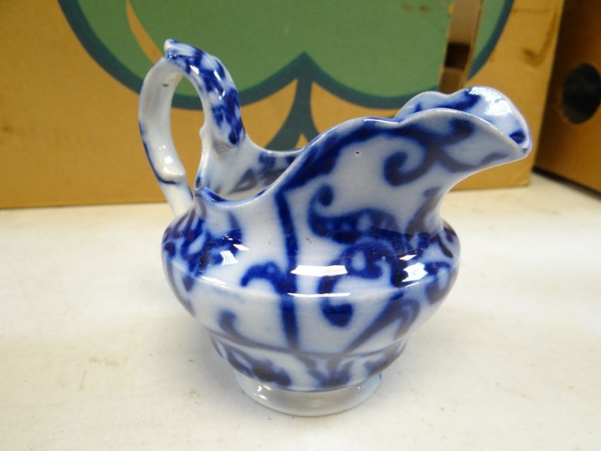 Regarding the tall jugs, the tall white one has a chip along the spout, no other issues. The shorter darker jug looks good, no problems.
