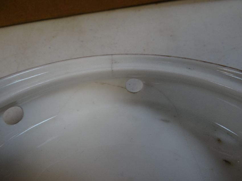 Two crenulations have been restored / reglued. The spout has a couple of small star-cracks in the glaze. The lid appears to be good. Base has multiple cracks.