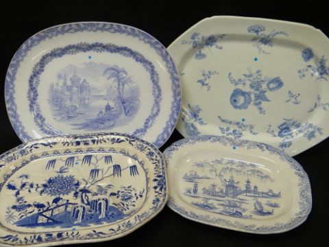 ASSORTED SWANSEA POTTERY PLATTERS & PLATES, including turkey platter, pearlware platter with feathered rim ETC (17)