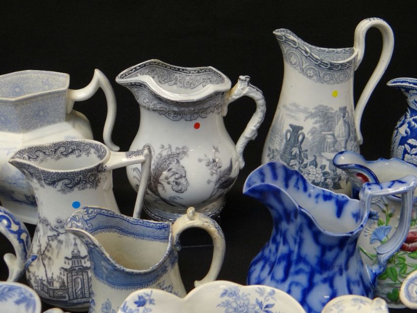 COLLECTION OF VARIOUS ANTIQUE WELSH POTTERY JUGS, painted and transfer printed, Llanelly, Swansea and several Ynysmeudwy examples noted (27)