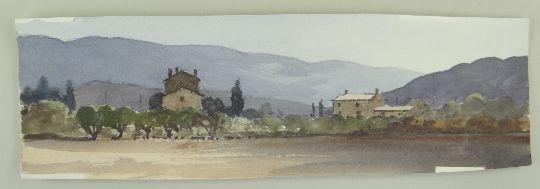 GARETH THOMAS watercolour on paper - three horizon landscapes, including of Venice, unsigned, unframed, largest lot 14.5 x 38.5cms (companions similar size)