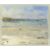 GARETH THOMAS gouache on card - beach scene with figures and beacon on a rock static in the distance, signed, unframed, 20.9 x 25cms