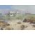 GARETH THOMAS oil on board - beach with houses, unsigned, unframed, 28.8 x 40.5cms
