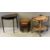 VINTAGE & REPRODUCTION OCCASIONAL FURNITURE GROUP to include a Priory style oak set of three occasional tables, 49cms H, 47cms W, 33cms D the largest, a mahogany half moon hall table on reeded supports, 76cms H, 76cms W, 38cms D and a vintage two drawer, two tier tea trolley, 71cms H, 64cms W, 43cms D