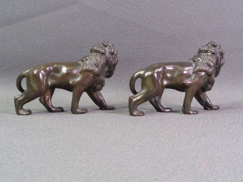 BRONZE LIONS, two - 8 x 12cms each