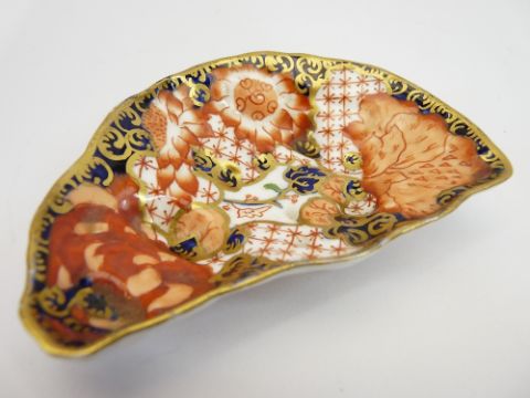 ROYAL CROWN DERBY CABINET WARE, 2 ITEMS to include a 2006 pastel floral Teddy bear (no stopper) and an 1896 oyster shell shaped pin dish, decorated in typical Imari pallet