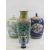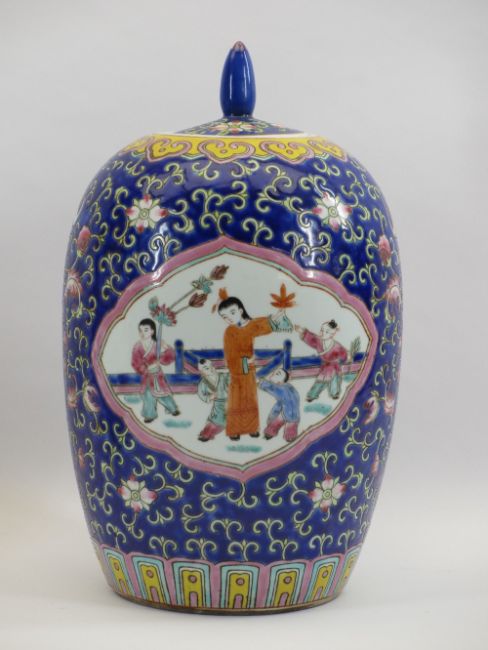 CHINESE LIDDED VASES (2), one being a Famille Verte, another square based taller example, 40cms H and a Blue & White crackle glaze vase, 18cms H