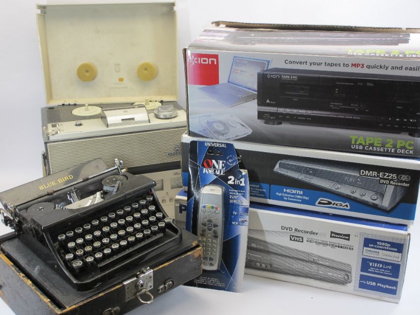 MARANTZ SD1010 TAPE DECK, Grundig vintage portable 'reel-to-reel' player, vintage cased 'Blue Bird' typewriter and other audio/visual equipment