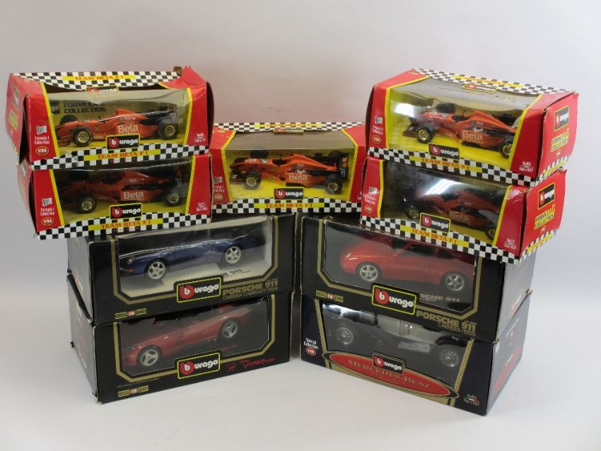 BURAGO 1/18TH SCALE MODELS (4) and 1/24 Team Beta F1 scale models (5)