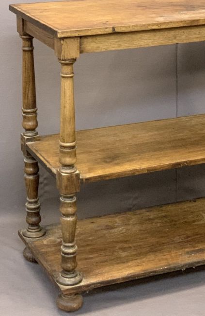 VICTORIAN MAHOGANY THREE-TIER DUMB WAITER on turned and block supports with bun feet and castors, 99cms H, 121.5cms W, 47.5cms D