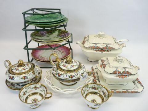 CROWN DUCAL ORANGE TREE TUREENS, Japanese teaware, Majolica and Green Leaf plates, ETC