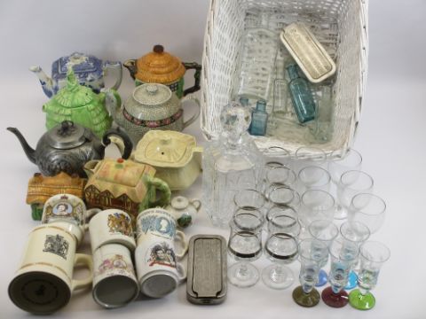 CHINA & GLASSWARE - vintage chemist bottles, commemorative china, novelty teapots, Rolls razors, ETC