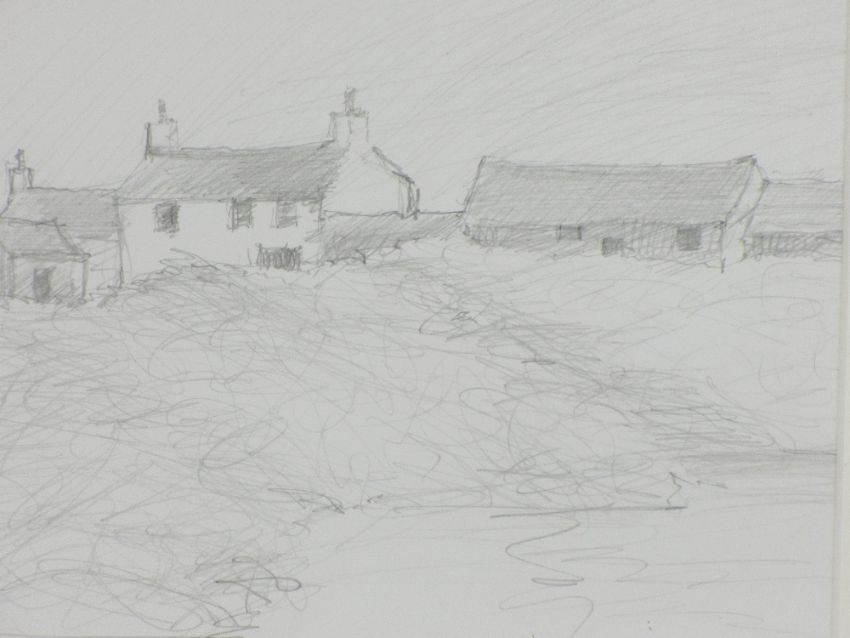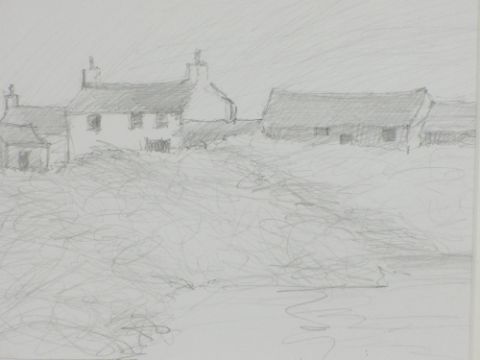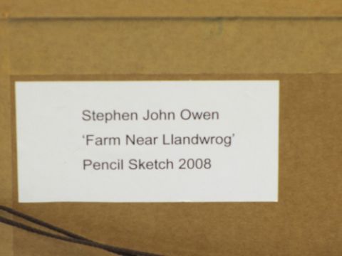STEPHEN JOHN OWEN pencil sketch titled verso - 'Farm near Llandwrog', 2008, initialled left hand side, 16 x 28cms