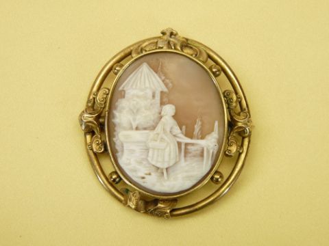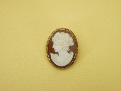 GOLD & OTHER JEWELLERY GROUP, 4 ITEMS including a 9ct gold framed cameo brooch, 9ct gold back and front locket on a fine link 9ct chain, 15ct gold diamond set tie pin and a further cameo carved brooch, possibly Victorian in a pinchbeck metal mount