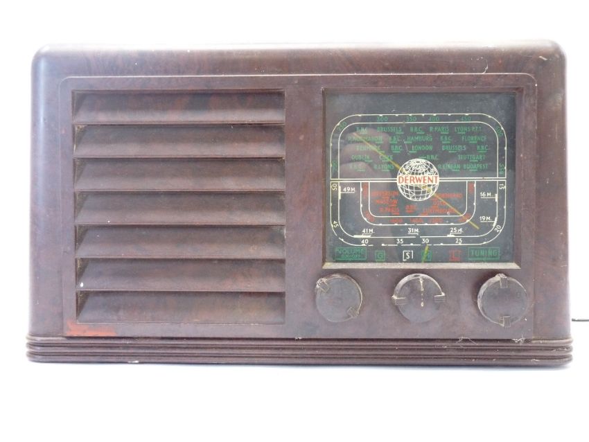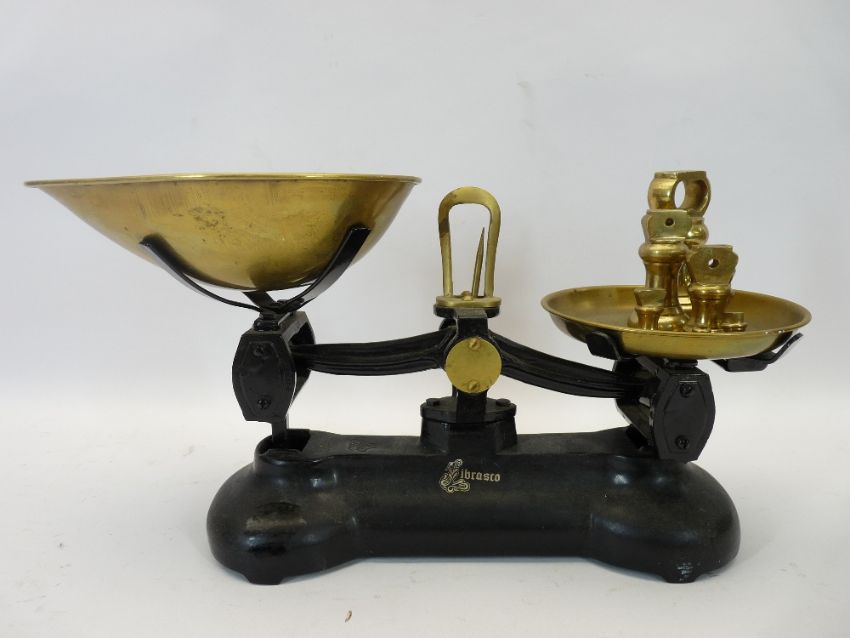 OERTLING CASED BALANCE SCALES, vintage kitchen set of scales and a Derwent old wireless
