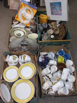 CABINET CHINA - Delft, commemorative and a large parcel of similar items. Also, Staffordshire tea and dinnerware, ETC, a large assortment (in 4 boxes)
