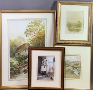 RUBENS SOUTHEY watercolour - riverscape and mill, 44 x 26cms and paintings and prints including by CHARLES BRITTAN